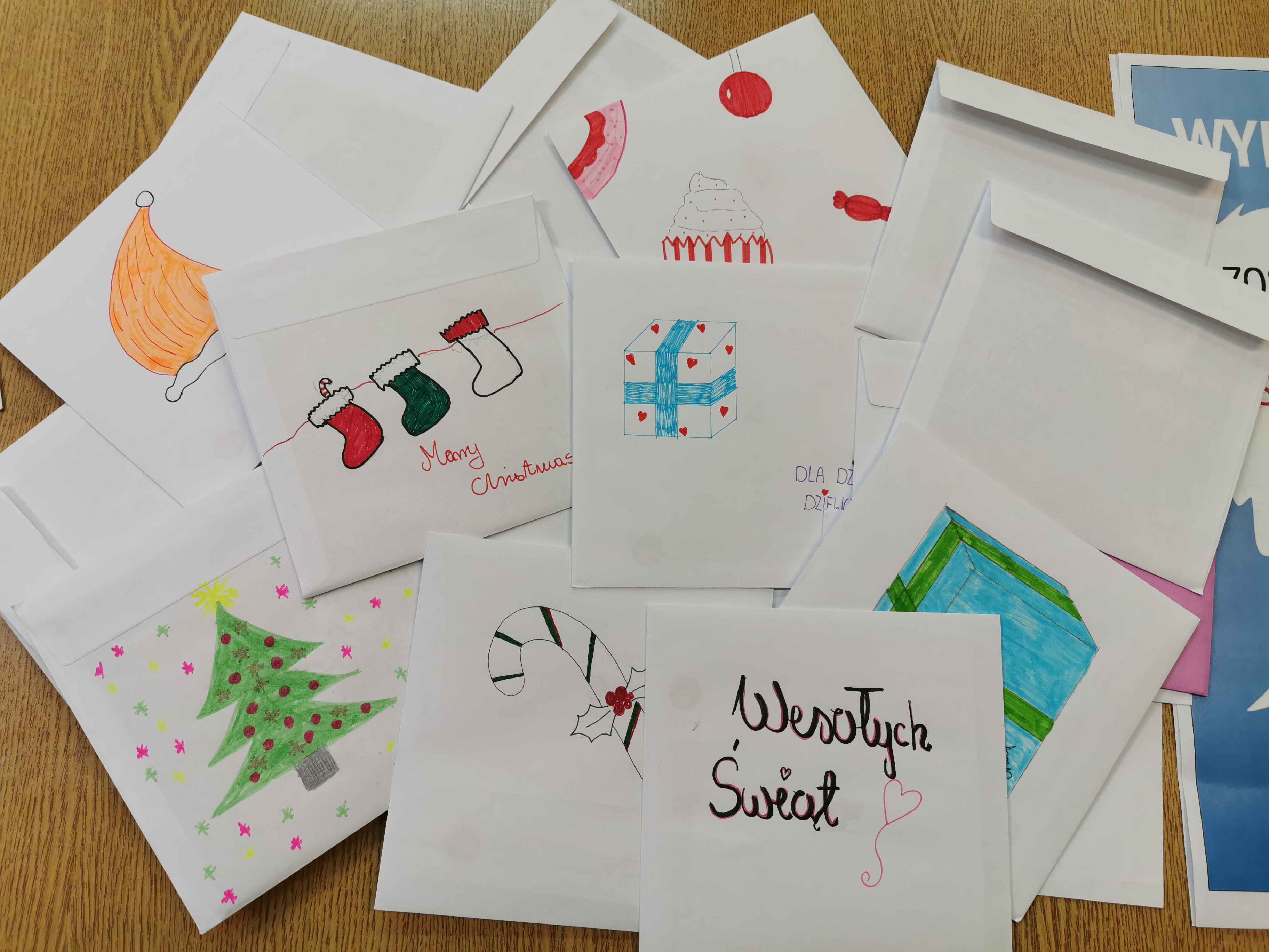 Inną akcją którą udało się zrealizować, tym razem w szkole było pisanie kartek do dzieci przebywających na oddziale onkologicznym w Lublinie. Dzięki portalom społecznościowym udało się nawiązać współpracę z Fundacją „Gdy liczy się czas” z Lublina, która propagowała akcję pn.: „Wylosuj Anioła”. Akcja polega na pisaniu kartek ze wsparciem, motywowaniu do niepoddawania się przeciwnościom, czy życzeniu zdrowia dla małych podopiecznych szpitala. Licealiści z wielkim oddaniem i z różnymi pomysłami tworzyli kolorowe kartki. Większość z nich to kartki świąteczne z okazji świąt Bożego Narodzenia. Dzięki temu pomysłowi udało się wysłać blisko 100 kartek, które Wolontariusze w Lublinie rozdadzą dzieciom w szpitalu. Często w kartkach można było znaleźć bardzo osobiste życzenia i słowa otuchy. Ktoś napisał, że przechodził przez podobne doświadczenie, ktoś inny zapewnił o modlitwie. Bardzo potrzebna akcja, szczególnie, że w dobie aplikacji mobilnych i komunikatorów coraz rzadziej korzysta się z tej formy wyrażania swoich emocji i pozdrowień.
