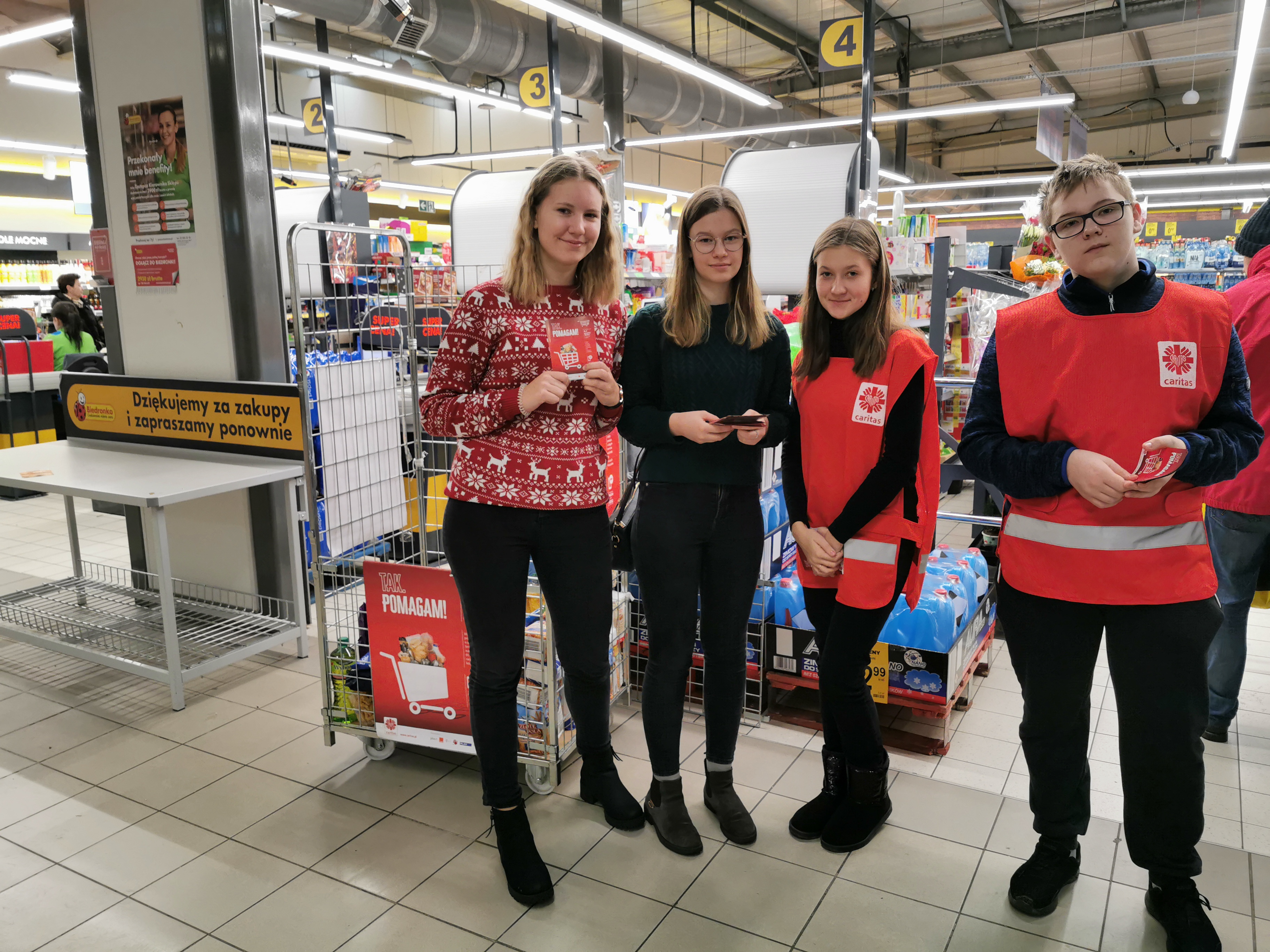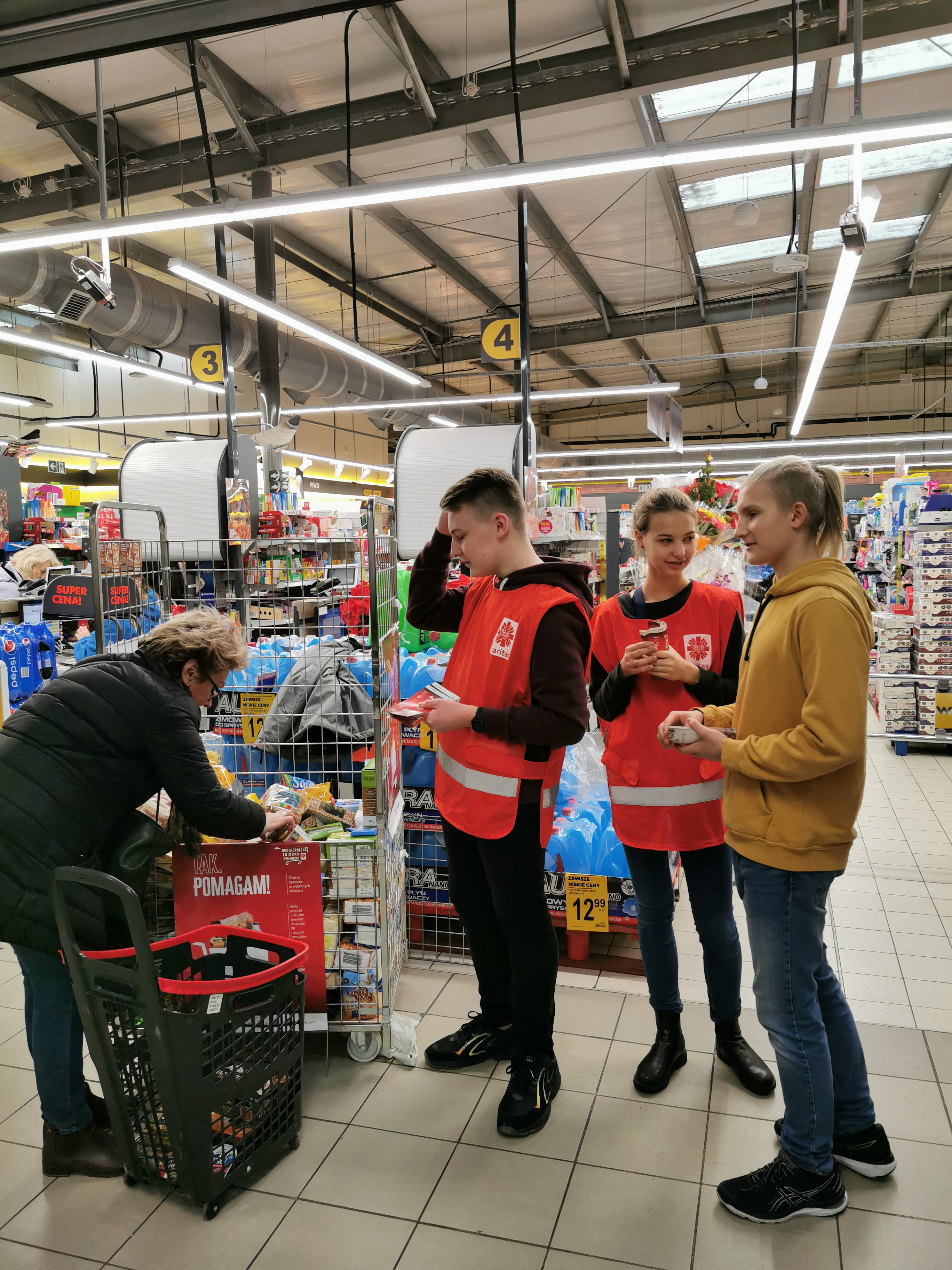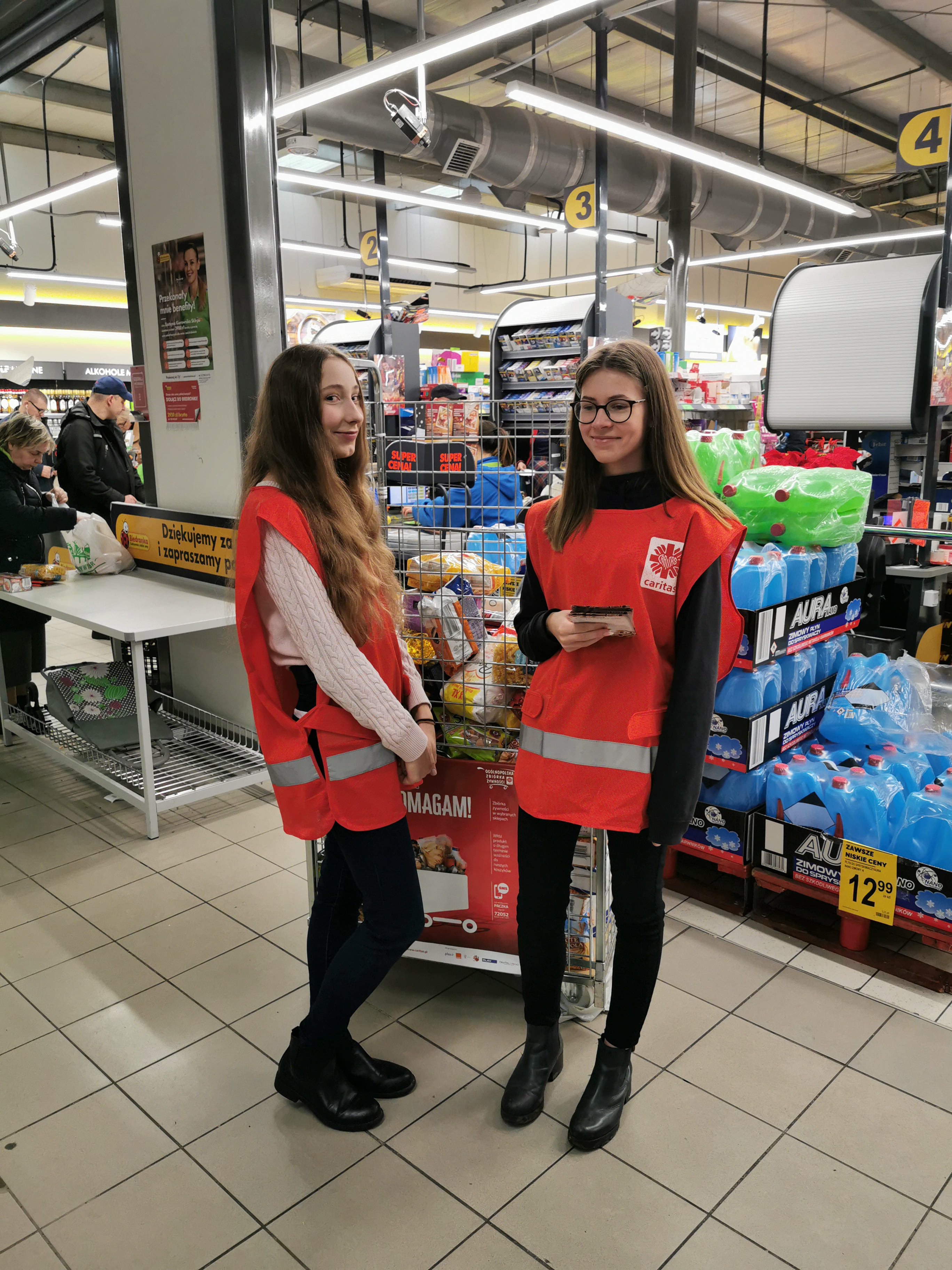We wrześniu oraz grudniu tego roku, nawiązaliśmy współpracę z Parafialnym Zespołem Caritas, działającym przy Bazylice Archikatedralnej w Szczecinie. Zespół ten włączał się w prowadzoną w całej Polsce zbiórce żywności dla potrzebujących. Akcja odbywała się w Centrach Handlowych Szczecina. Zadaniem Wolontariuszy było przygotowanie tej akcji: wyznaczenie harmonogramu działań, czy zachęcanie osób robiących zakupy do wsparcia tego dzieła. Rozdawali ulotki, prowadzili rozmowy, które produkty najbardziej byłyby przydatne i ważne, magazynowali zebraną żywność i środki czystości. We wrześniowej zbiórce żywności Wolontariuszom udało się pozyskać przeszło 200 kilogramów pokarmów. Produkty te posłużyły do przygotowania paczek dla potrzebujących mieszkańców Szczecina.